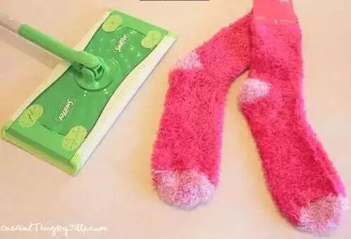吸附毛屑很好用的平板拖把,其实旧袜子跟它有类似的功效喔!