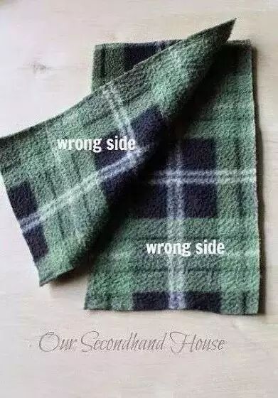 拿出其中的两块,将它们「错的那一面」对在一起叠好,什么是错的那一面呢?就是平放时边缘会往上翘的那一面。