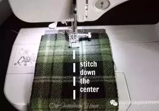 将你刚刚对齐好的「错误面」拿到缝纫机下,直接从中间缝一条线即可,边缘留大概1-1.5公分的距离。