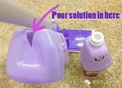 如果有些人不是使用单纯的平板拖把,而是这种清洁效果更强的免水除尘拖,每次都要买它的补充罐也是非常浪费,其实这时候只要在瓶子那里剪一道口,再把自制的清洁剂倒进去就可以啰!自制清洁剂的比例是一半水、一半醋,再加两三滴洗碗精,不但省钱,也不会含太多毒素。