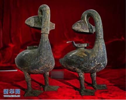 两千多年前的中国人就发明了可调节光线明暗的灯具,还能避免燃烧的烟气污染空气。海昏侯主墓的北藏閣中出土了多盏各式造型的青铜灯,其中以雁鱼灯的工艺价值和环保价值最引人关注。新发现的雁鱼灯共两盏,均为青铜质地,其整体作鸿雁回首衔鱼伫立状,雁体态宽肥,颈修长,身两侧铸出羽翼,有短尾,双足并立,掌有蹼。雁喙张开衔一鱼,鱼身短肥,下接灯罩盖。
