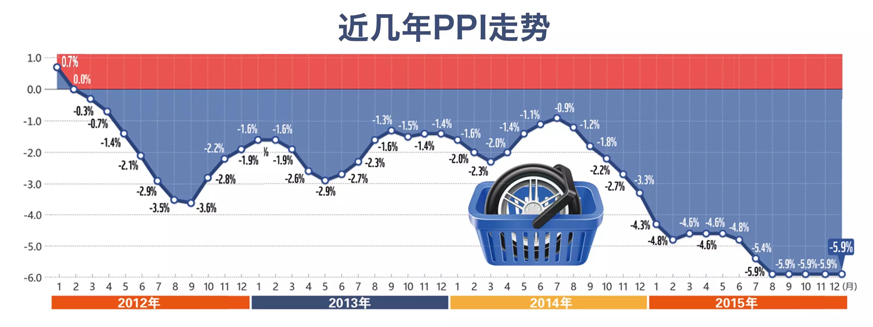 两个数据一喜一忧。喜的是,尽管2015年最后一个月受全国部分地区降温雨雪天气影响,鲜菜和鲜果价格略有上涨,但CPI总体处于低位运行状态,继续在“1%”时代漫步,低通胀格局符合人们预期,预计2016年仍将维持在2%以内。