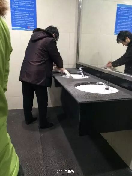 据网友爆料,当时阿姨进入厕所杀鱼后,台子上全是血。网友照片中显示,在车站厕所一个洗手台盆前,一大妈确实是用双手在洗一条大鱼,台面上有淡淡血水。对此,许多网友表示惊讶,更有网友调侃:“估计这鱼汲了厕所的灵气,吃起来有种异样的鲜。”