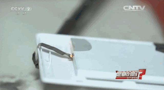 记者随机准备好了三个同一品牌的充电宝,实验结果显示,在经过撞击后,第一个充电宝,被撞击后起了一股黑烟,但并没有着火;第二个充电宝被重物撞击后,没有反应;第三个充电宝被硬物砸中后冒烟着起了大火。