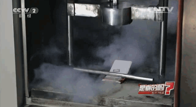 实验操作人员用一个9.1公斤的铁块,从61厘米处跌落砸到充电宝上,模拟电池被受到挤压后的安全性。实验参考锂离子电池强制性国家标准GB31241中重物冲击的试验方法设计,主要模拟充电宝在运输过程中过受到外部重物撞击后可能会发生的危险情况。