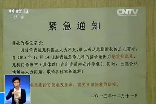 上海黄浦区中心医院最近发出公告称儿科医生人员不足,无法维持夜间急诊。南京一家医院因为仅有的医生生病了,儿科也就无奈暂停了。