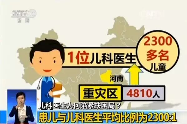 《2015中国卫生和计划生育统计年鉴》的数据显示,我国平均每2300名儿童患者才配备1位儿科医生。而像河南更是“重灾区”,这个数字甚至翻倍:4810人中才有1名儿科医生。儿科医生短缺已是全国现象,缺口达到20万左右。
