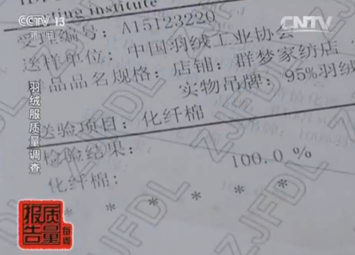 △央视新闻视频:《每周质量报告》羽绒服质量调查