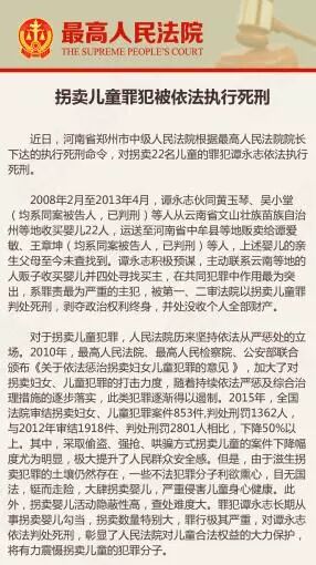 相关的法学专家也认为谭永志被判死刑,符合相关的法律规定,也符合司法部门对拐卖妇女儿童案从严从重判处的原则。