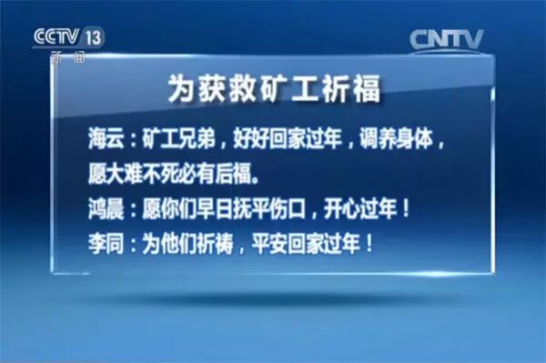 4名被困矿工的救援牵动着千千万万人们的心,来自各地的网友一起见证了紧张有序的救援全过程。网友踊跃留言为矿工祈福、为救援点赞: