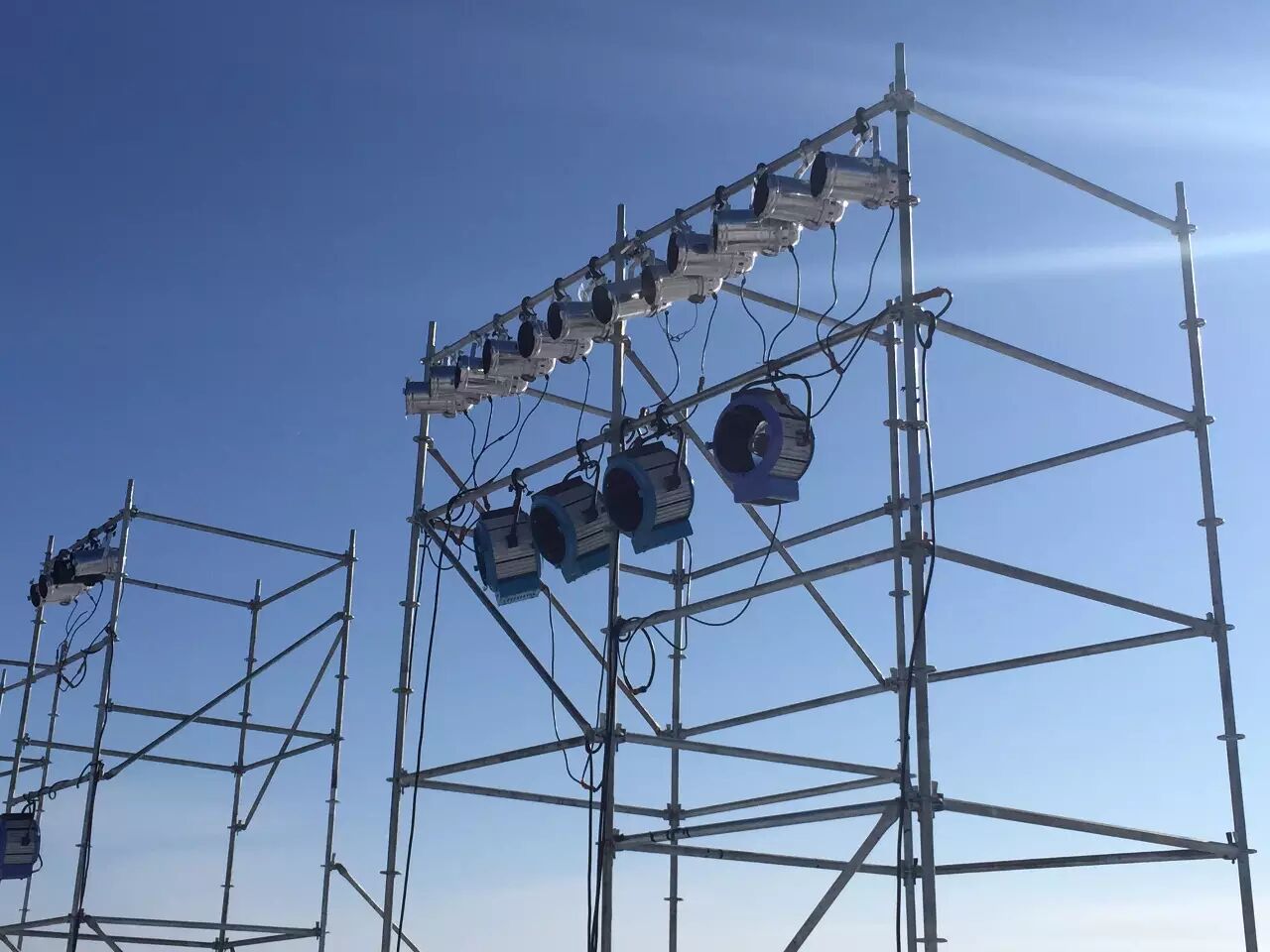 负责灯光的吴磊介绍,外景场地的灯管甚至都被冻的爆裂。为了防止灯具长期暴露在外导致灯具损坏,工作人员对部分灯具进行了改装,将过去由电脑自动控制的灯具,改为人工手动控制,20%、30%这样循序开灯,直到全亮,以防灯具爆裂。同时,在常规基础上,增加了一倍以上的灯具数量,来保证春晚直播的安全播出。