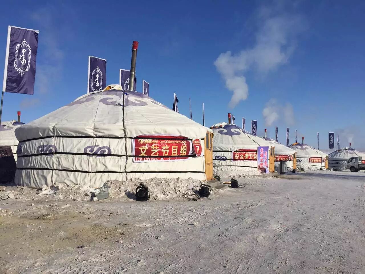 舞美设计宋晨说,会场外景的冻土就有一米多,在搭设舞台时,下桩、打柱子都非常困难;在低温下,胶水等好多材料都没法使用,打板,粘图案这些在北京几天能完成的东西,在这里就要很长时间来完成,甚至要从外地往这里运。