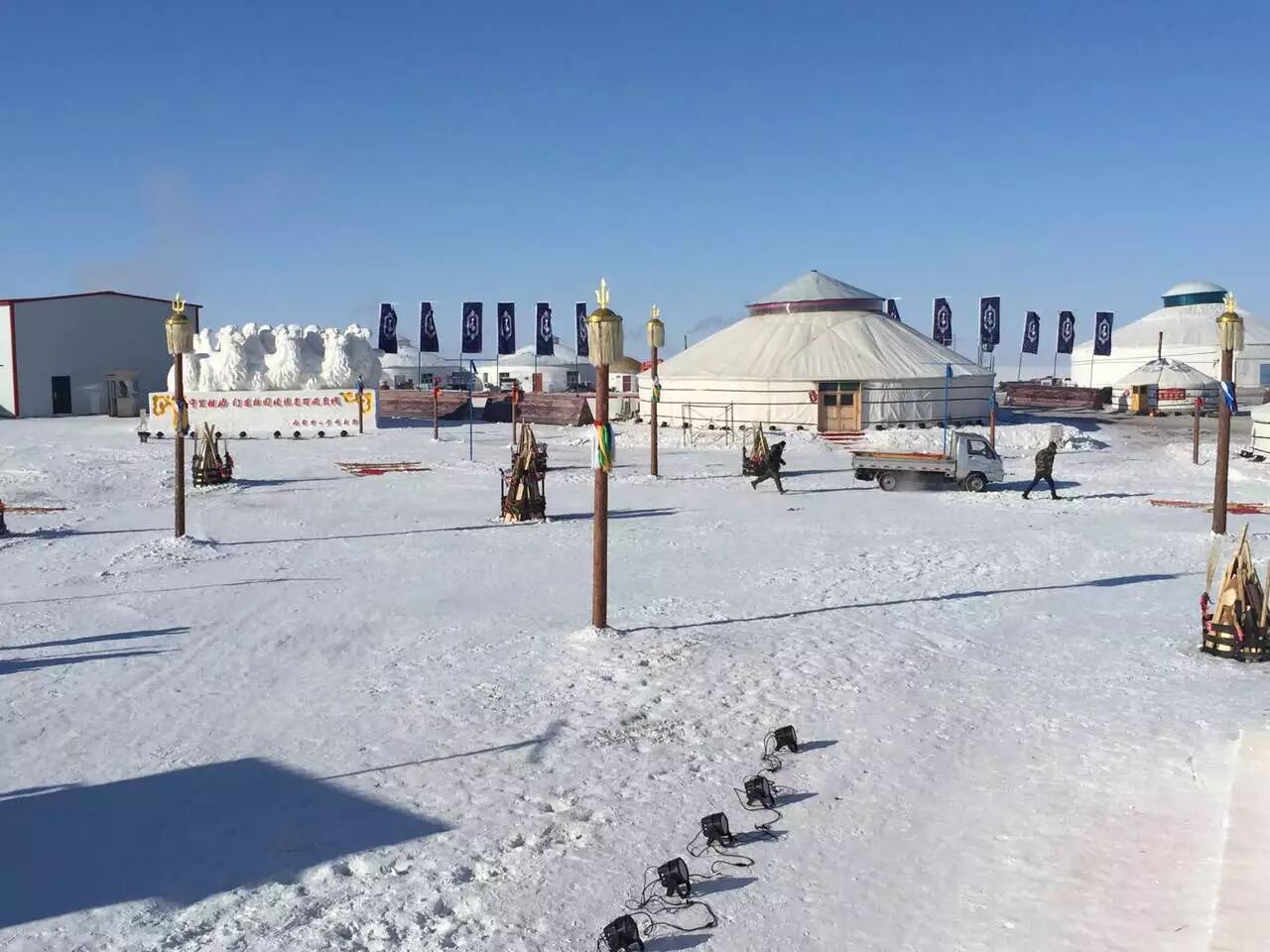 今年央视春晚的内蒙古分会场,设在了享有“天堂草原”美誉的呼伦贝尔市国家草原公园内。目前,会场内的基础建设已经全部完工,三座大型雪雕已经全部成型。