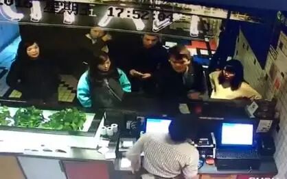 之后,小陈抬头将零钞放在柜台上,突然,该男子一巴掌扇向小陈脸部。打人后,男子身边一名孕妇拉住了他。而柜台内的小陈则捂着脸走向柜台边的小门,准备出去理论。