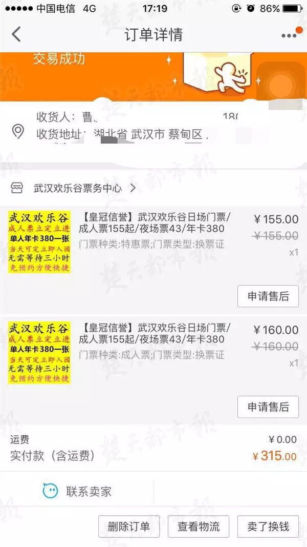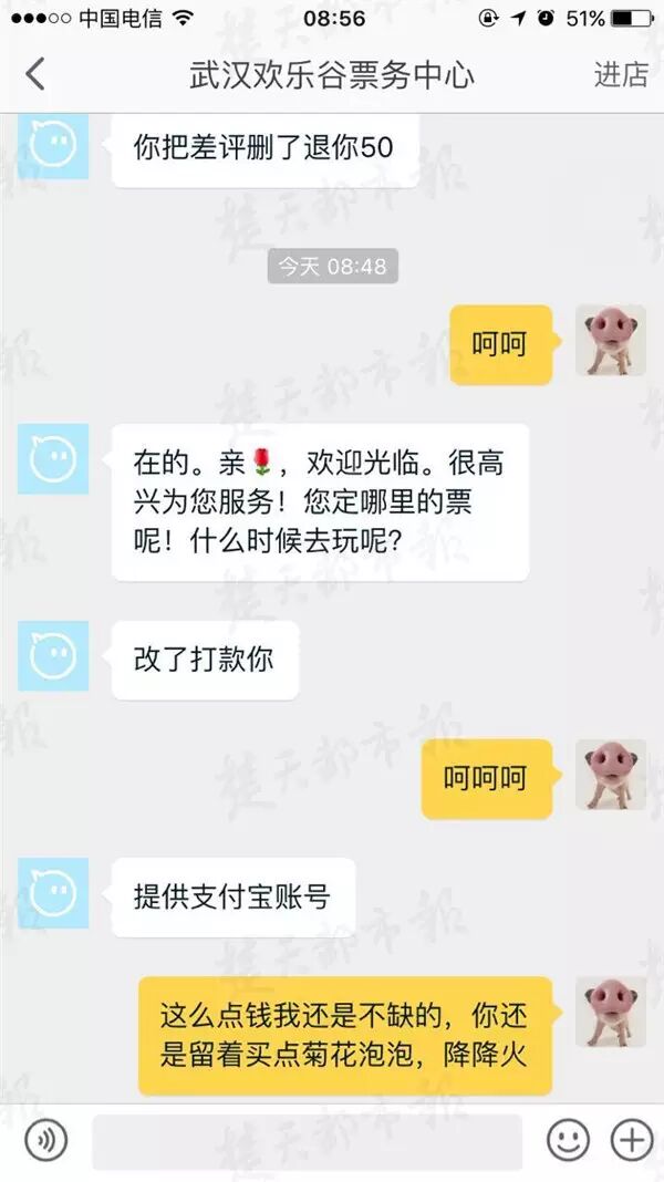 眼看着快要下班了,小曹又收到了快递。这次,她很忐忑,用颤抖的手撕开包裹,她彻底气哭了!小曹20多岁,在蔡甸一家公司上班。3月3日一早,前台工作人员告诉她,有她的快递送到,已帮忙签收了。平时经常网购,每次都是前台签收,她并没觉得奇怪。可一打开快递,她愣了:黑字,写在白布上。“这是什么?”在同事的提醒下,她才知道,这是一幅祭奠用的挽联。小曹并未购买过这类物品。刚开始,她怀疑是快递寄错了,可快递单上的收件人姓名、电话和地址,与她的信息完全一致。寄件人没有留下详细信息,只有一个电话,但快递员用黑色墨水笔写了字,其中有两个数字被遮住,看不清楚。想打电话过去问,也不知该打哪个号码。小曹思绪一下凌乱了。朋友的恶作剧?不可能,没人会开这种玩笑。她仔细回忆,前几天,因为一个淘宝差评,她曾与卖家争论过。小曹翻出卖家电话,打过去质问,对方却不承认有此事。下午,就在快下班时,小曹又收到一个快递,打开后发现:这是一个纸质的牌位!上面写着“曹X之灵位”!小曹告诉记者,上周末,她和男友去武汉欢乐谷玩,她提前在淘宝上,一家叫“武汉欢乐谷票务中心”的店里,订了两张门票,一共315元。买票时,她明确告诉卖家,她是武汉人,男朋友是外地人。卖家说,会提前发送给她电子票,她凭此到欢乐谷门口兑换实体票即可。而其男朋友是外地人,付款后刷身份证就可以进门了。周末,小曹和男友开心地出发了。到了欢乐谷门口已中午12时许,她取票很顺利,可男友用身份证却无法入园。她致电卖家沟通后,卖家承认失误,卖家称其家人就在附近,可以送实体票来。小曹和男友只好等待。10多分钟后,一名女子骑着电动车赶到,他们才得以入园。小曹称,从取票到与欢乐谷工作人员沟通、与卖家沟通,再到卖家送来门票,他们在欢乐谷门口,等了1个小时10分钟。一天的好心情都坏了。回家后,她确认收货,并给了卖家差评。当时,卖家威胁称,要她“等着”、“你还不得了”……记者看到,小曹和卖家的淘宝聊天记录上,卖家让其删除评价,承诺给其补偿50元。小曹称,她不缺这个钱,不愿意更改。卖家回复:“有病”、“等着吧”“你还不得了”……为找出真正的寄件人,记者作了尝试。11位数字的寄件人手机号码中,有两个数字看不清,根据号码属地河北、以及数字大概轮廓等信息,记者尝试不同数字组合,多次致电后,终于联系上了寄件人。寄件人称,他在淘宝开了一家祭奠用品店。2月29日,一位武汉的买家,淘宝名“舅风匕之缘”,拍了一副挽联,价格为10元包邮。买家给的地址和电话,正是小曹的信息。他们也不知道,这是有人恶意为之。寄件人提供了这位“舅风匕之缘”的支付宝账号,是一个归属地为武汉的手机号。记者将此手机号提供给小曹,她一眼发现,这正是给她打电话,让她删除评价的门票卖家手机号!