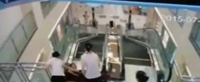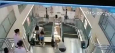 监控视频:孩子逆行上扶梯