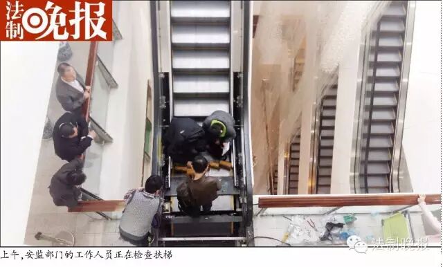 昨天上午,安监部门的工作人员正在检查扶梯