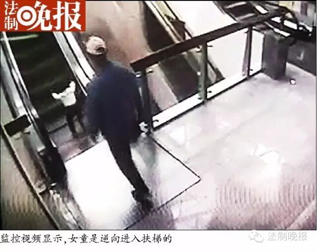 监控视频显示,女童是逆向进入扶梯的