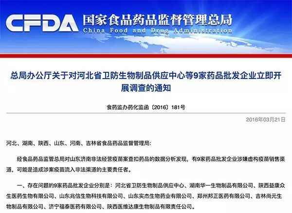 山东济南非法经营疫苗案持续受到关注。昨日,国家食品药品监管总局通报,经食品药品监管总局对山东济南非法经营疫苗案查扣药品的数据分析发现,有9家药品批发企业涉嫌虚构疫苗销售渠道,可能是造成涉案疫苗流入非法渠道的主要责任者。