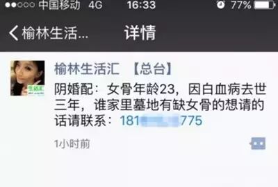 “配阴婚:女骨年龄23岁,因白血病去世三年,