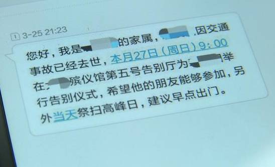 几天前,南京市民李先生收到了一条信息,内容是邀请他参加王某的葬礼,而巧合的是,李先生恰好是有一个许久不联系的朋友王某。 南京市公安局鼓楼分局民警介绍,李先生因为清明节期间不在南京,没有办法去参加告别仪式,就说转个份子钱表示慰问。很快,对方提供了一个银行账号,李先生转了2000元过去。随后,李先生向另一位朋友提到王某的事情,可这位朋友说,刚看到王某在更新朋友圈。这时,李先生才意识到被骗了,于是立即报警求助。