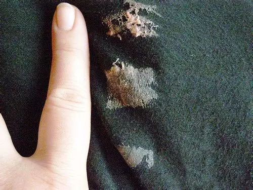 5.把清涼油涂在口香糖污渍上,一会儿污渍就会变软,用手一抠就掉下来了。