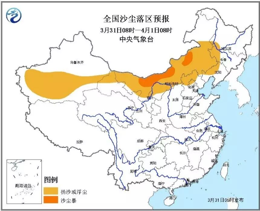 △中央气象台今晨6点继续发布沙尘暴蓝色预警