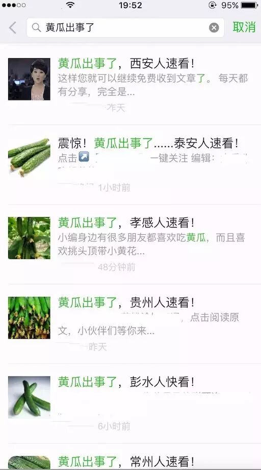 在近期朋友圈疯狂转发的视频中,多以“黄瓜出事了,XXX速看!”为题,随便点进去一条,都有几千甚至上万的阅读量。