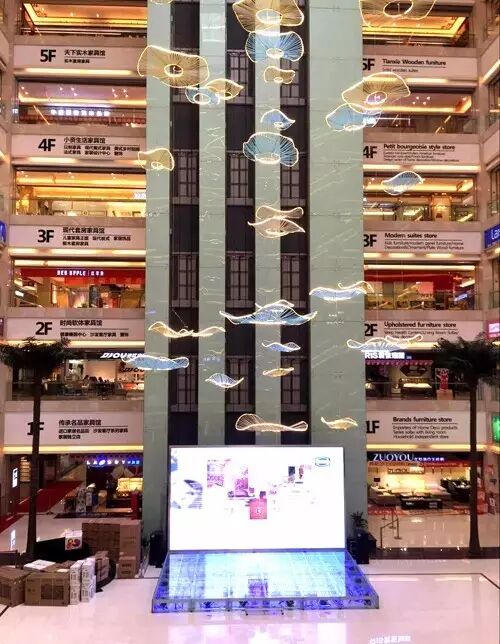欧亚达家居有3个观光电梯,出事时,张主管正在擦商场内其中一部观光电梯外面的玻璃。