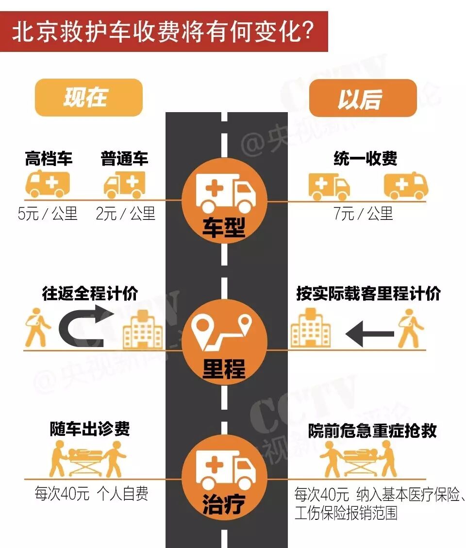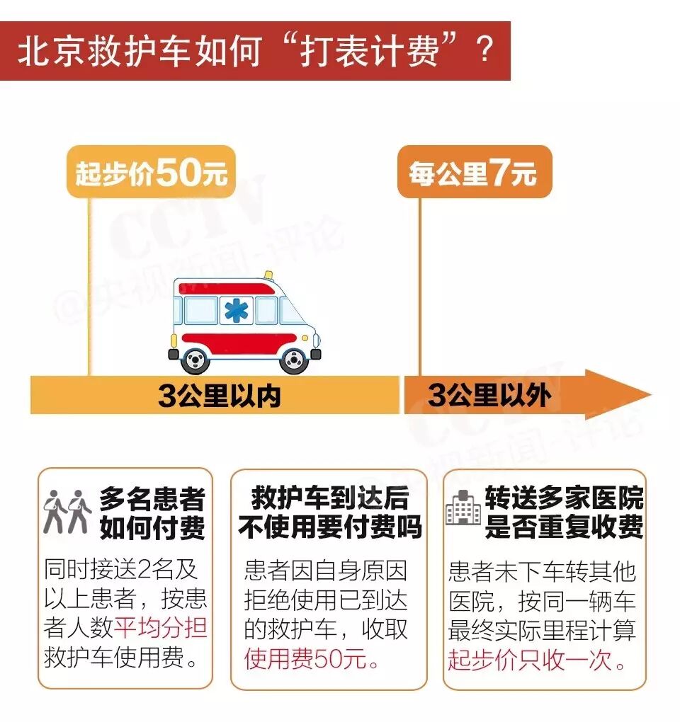 5月1日起,北京救护车也要“打表计费”了!最近,北京市发改委等3部门发布院前急救有关项目价格的通知,规定救护车使用费计价方式将从“往返全程计价”改为“按载客里程计价”,并统一标准为:3公里以内(含)50元,3公里以上每公里7元。120和999也都将执行同一标准。