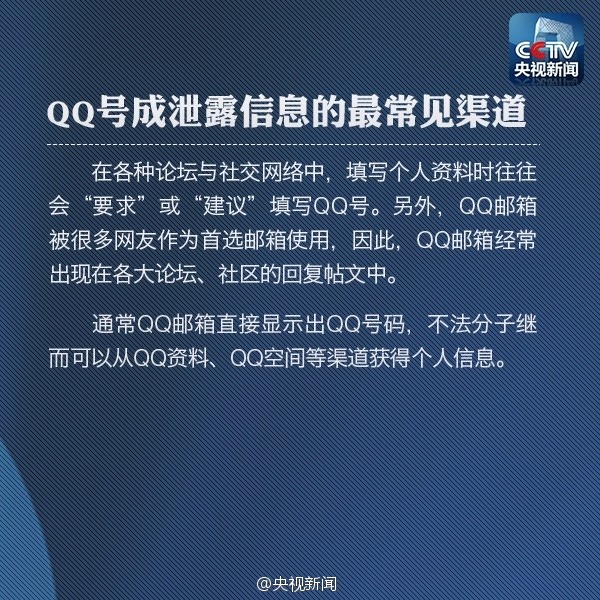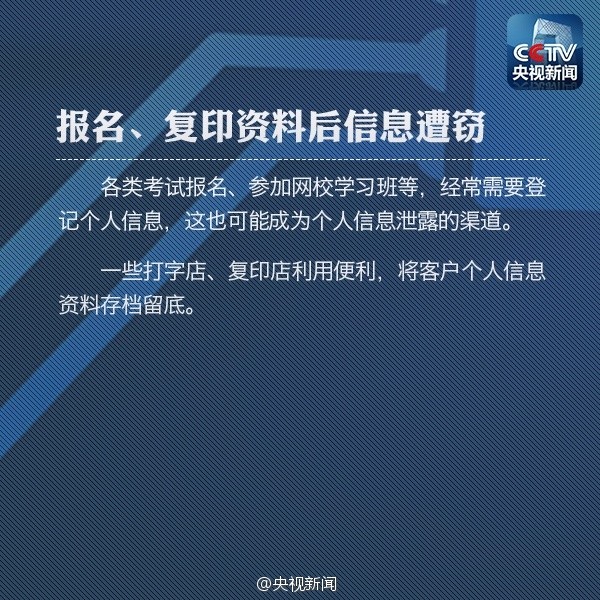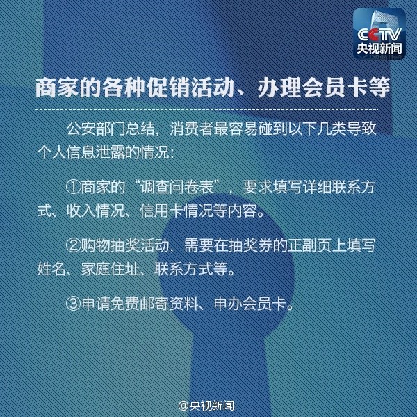 微博、QQ空间留言互动,参加“有奖问卷调查”,申请免费邮寄资料、申办会员卡,都可能泄露个人资料。有调查报告显示,有近80%的网民手机号遭到过泄露,并有50%以上的网民因手机号泄露而受到影响。泄露隐私的途径主要有哪些?看图↓↓