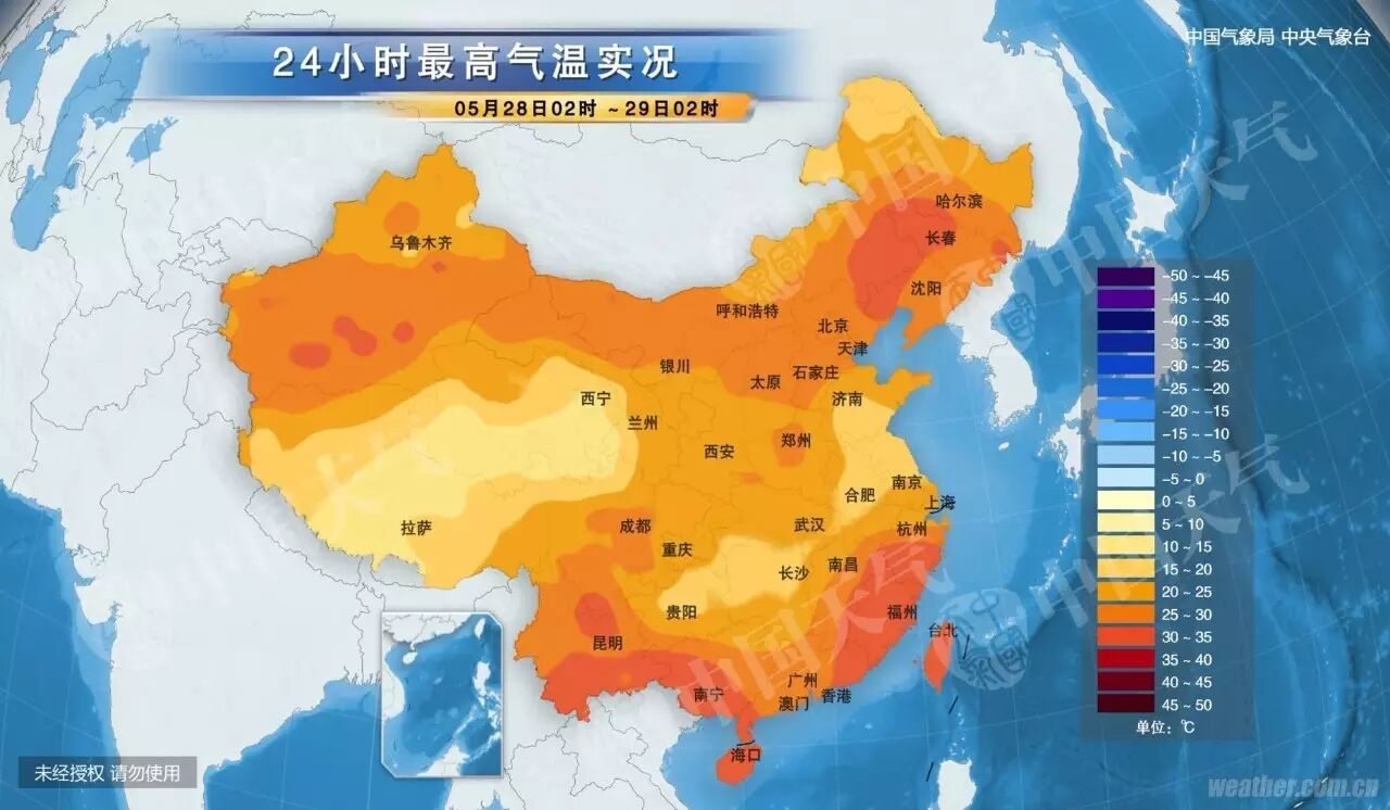 中央气象台消息,今(29日)明两天,江南、华南地区降雨范围明显减小,强度减弱。不过,从31日开始,到6月3日,长江中下游地区还将有一次较强降雨过程。月底前,华北、华南大部最高气温均在30℃以上,不过由于相对湿度不同,后者体感温度可能会更高。