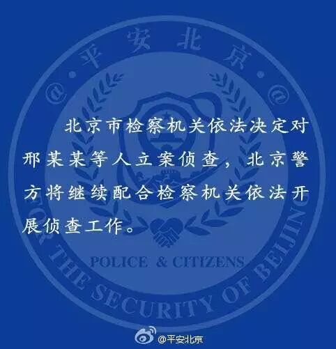 随后@平安北京发布消息表示 :北京警方将继续配合检察机关依法开展侦查工作。
