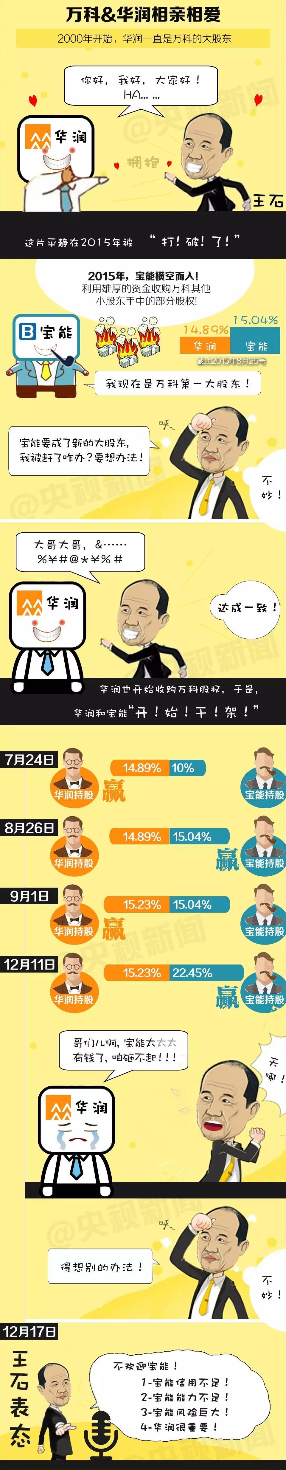 从“举牌”到“逼宫”,王石一步步被逼入死角。去年明明是万科和宝能之争(一图丨王石会被驱逐吗?资本大战比做红烧肉难多了!),怎么转眼间,万科和华润就开撕了,宝能又为何提议罢免所有未提出辞任的董事。小编带你回顾整个过程: