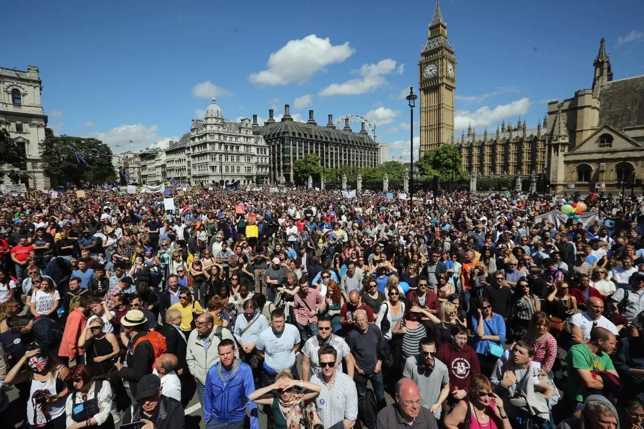 △当地时间2016年7月2日,英国伦敦,民众举行大规模抗议英国脱欧游行。