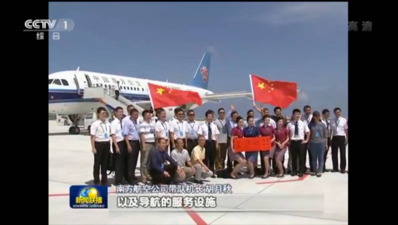 今天(13日)早上8点30分、8点40分,中国政府征用的南方航空公司、海南航空公司两架民航客机先后从海口美兰国际机场起飞,经过近2个小时的飞行,分别于10点29分、10点28分在美济礁新建机场和渚碧礁新建机场平稳着陆并于当日下午返回海口,试飞成功。至此,我国已在永暑、美济、渚碧礁各建设了1座机场并投入使用。