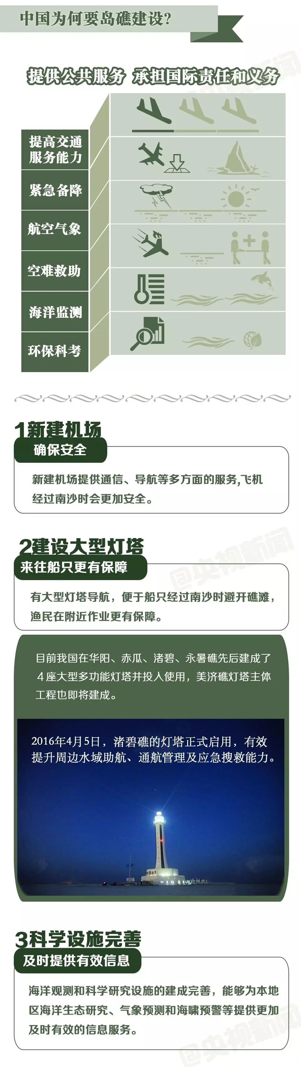 南沙群岛离大陆非常遥远,它又是航线非常密集的地方,这些地区经常出现海难事故。所以中方进行的岛礁建设,有助于中国更好地履行国际责任,提供必要的公共产品。