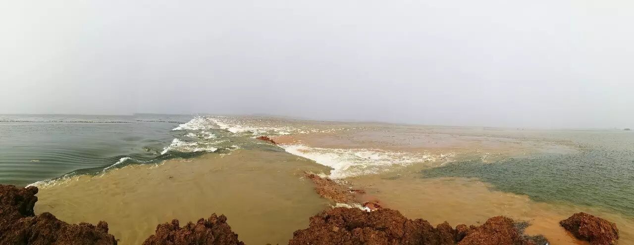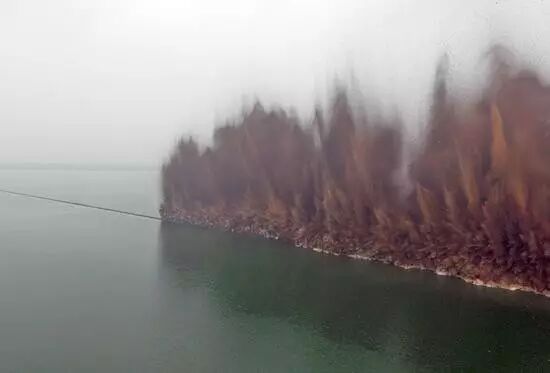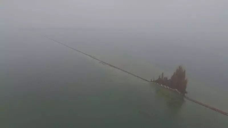 △ 隔堤被炸开后,湖水从梁子湖缓缓流向牛山湖。