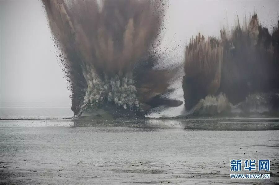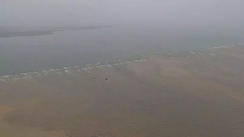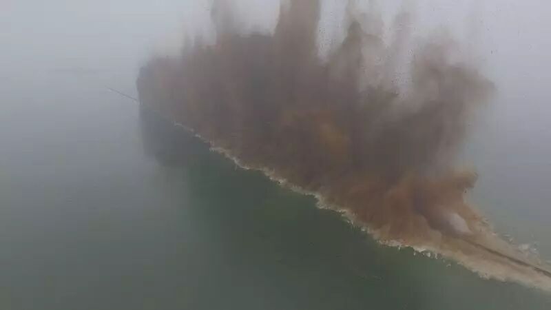 △ 央视记者航拍炸堤瞬间(航拍记者:梁洋 李玮)