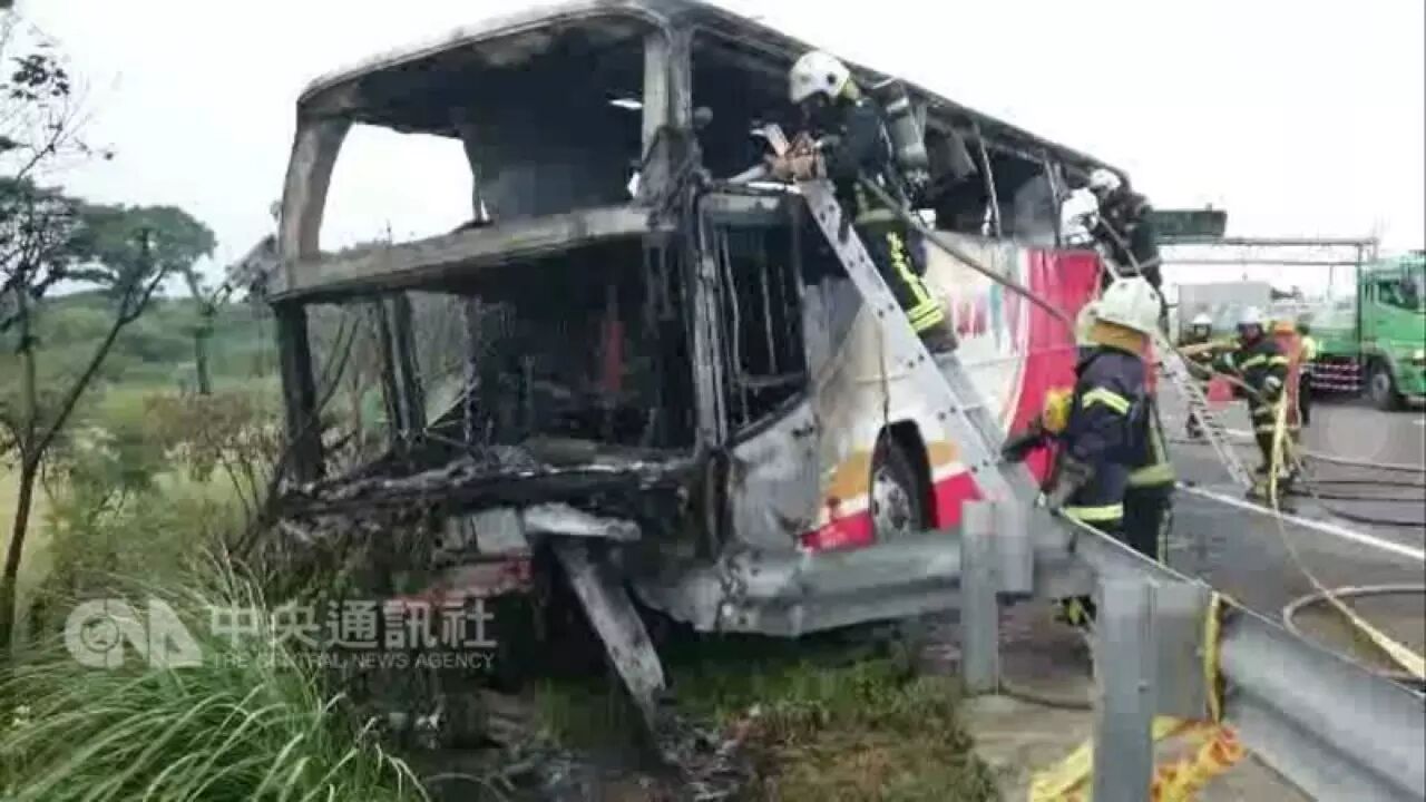 有目击者指出,13:09车辆全面燃烧,12分钟后扑灭。游览车车头在行进中就已经冒出浓烟,接着撞上护栏,卡住后起火,疑似车辆先出问题才导致这场悲剧。