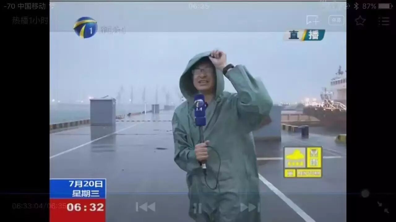 据媒体报道,天津港码头今早9级大风,让记者无法站立!