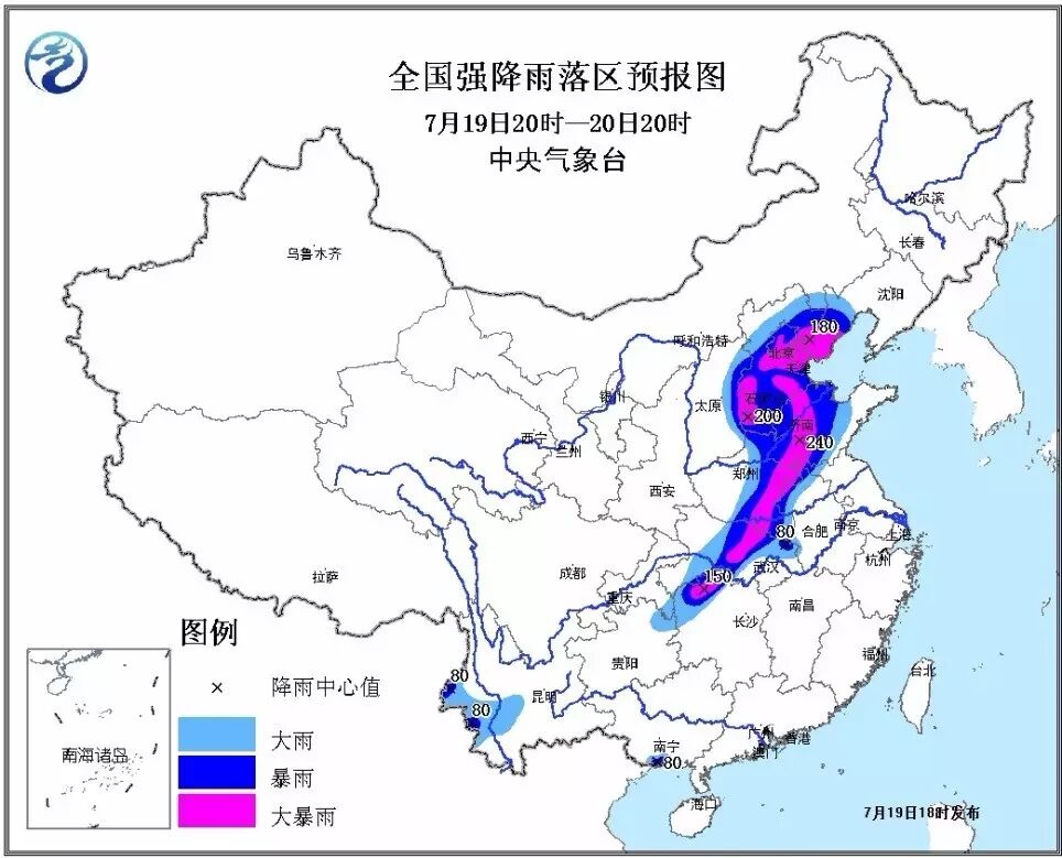 从7月18日开始,新一轮强降雨开始影响长江以北地区,北方多地遭遇今年以来最大范围的强降雨,昨天,北方暴雨面积将达24.83万平方公里,北京、天津、河北、河南、山东、山西、四川等地都有大雨或暴雨,北方迎来“暴雨模式”。