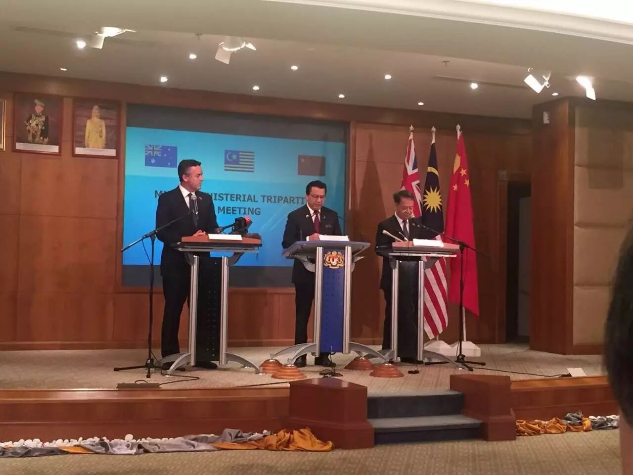 22日,来自中国、马来西亚和澳大利亚三国的交通部长在马来西亚布城举行会议,讨论马航MH370航班搜寻后续工作安排。