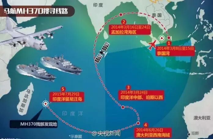 3月24日晚,马来西亚总理纳吉布召开紧急发布会,向全世界公布:根据数据分析,失联的马航MH370客机“终结于”南印度洋。至此,MH370的搜寻区域全部集中在南印度洋。