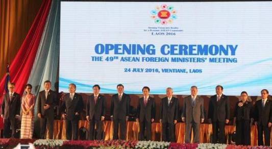 △东盟外长会通过的联合声明未提南海仲裁,图为外长会开幕式