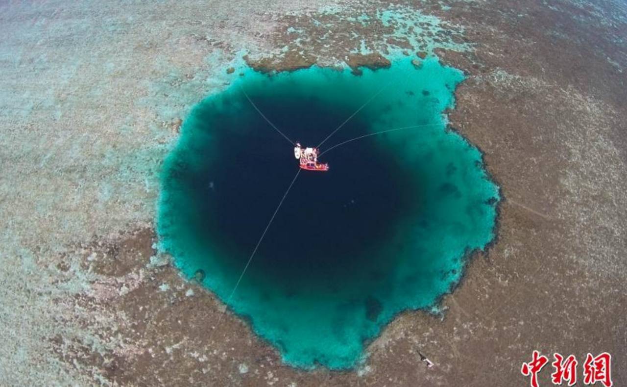 “三沙永乐龙洞”位于三沙市西沙群岛永乐环礁晋卿岛与石屿的礁盘中,深达300.89米。海洋蓝洞是海底形成的巨大深洞,是地球罕见的自然地理现象,从海面上看,海洋蓝洞呈现出与周边水域不同的深蓝色。海洋蓝洞极具科学价值,被科学家誉为“地球给人类保留宇宙秘密的最后遗产”。