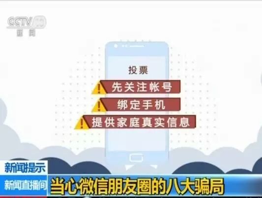 在微信的朋友圈里,帮宝宝投票、爱心筹款、拼团购物等消息越来越多,这些看似优惠或献爱心的活动,有可能会悄悄地盗走你的信息和钱财。日前,警方归类总结出了朋友圈八大骗局,一起来看看,以防自己被骗: