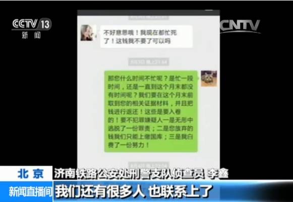 因着急赶火车,张凯月就没再等下去。后来,她多次和这名陌生男子联系,却联系不上。直到警方跟她联系,她才知道自己被骗了。