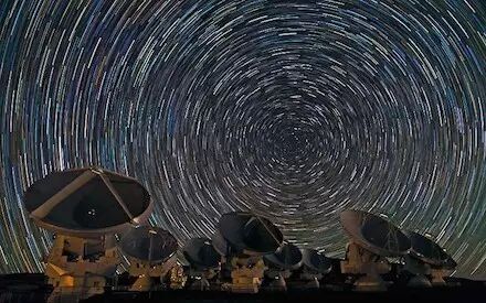 阿塔卡玛大型毫米波天线阵位于智利北部的查南托高原,由64面口径为12米的射电天线组成,是多个国家的研究机构合作建造的大型射电望远镜阵列。这里海拔五千多米,是地球上气候最干燥的地区之一,非常适合毫米波天文观测。
