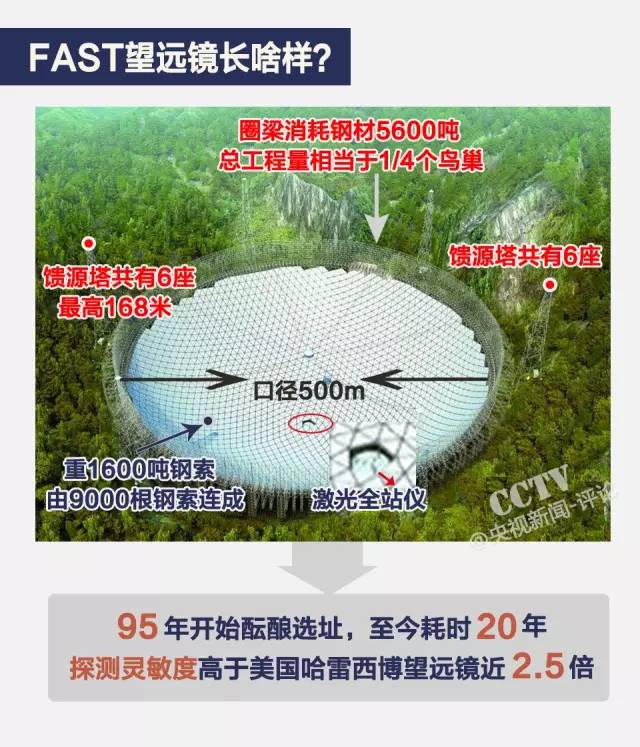 2011年,500米球面射电望远镜(FAST)在贵州开工。从去年7月23日开始,FAST开始进行现场拼装。今年7月,总面积约25万平方米反射面的安装工程完成。